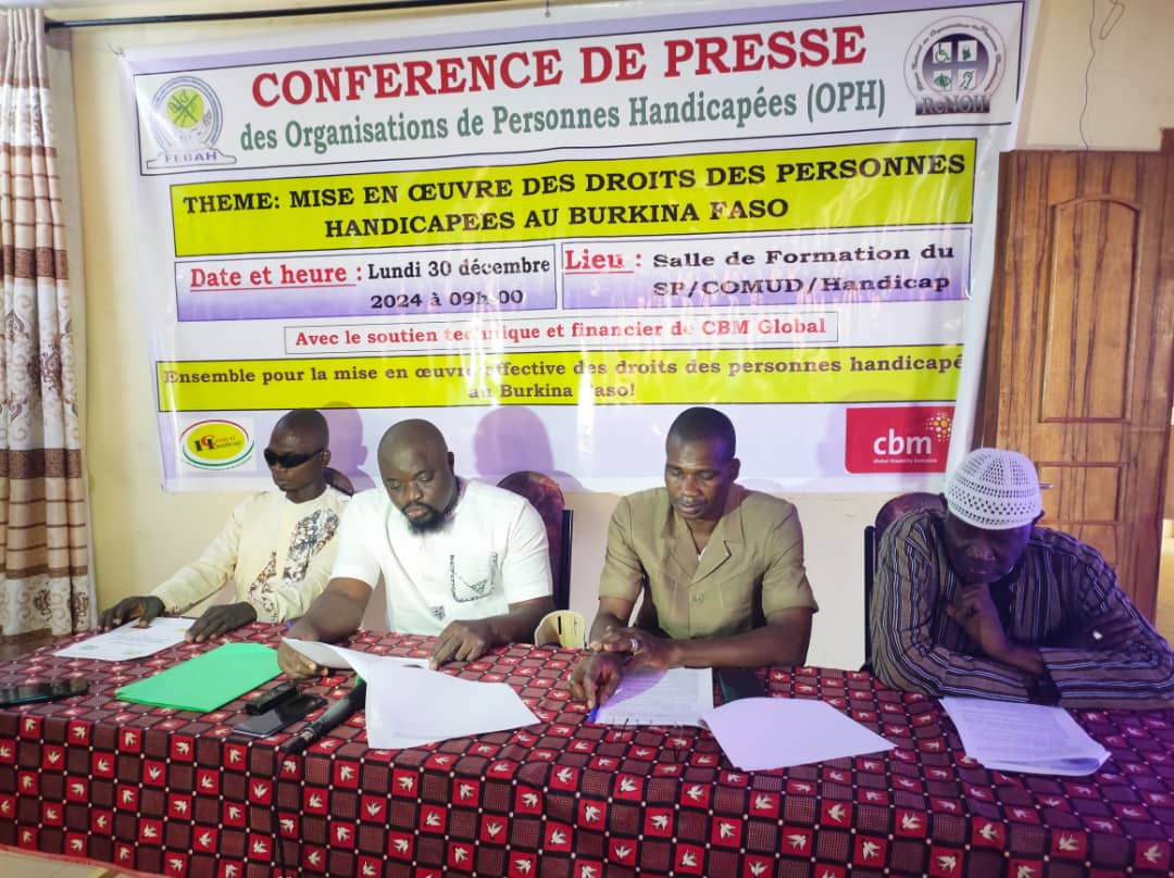 La Fédération burkinabè des associations pour la promotion des personnes handicapées (FEBAH) a organisé, ce lundi 30 décembre 2024, une conférence de presse à Ouagadougou pour faire le point sur la mise en œuvre des droits des personnes handicapées au Burkina Faso.